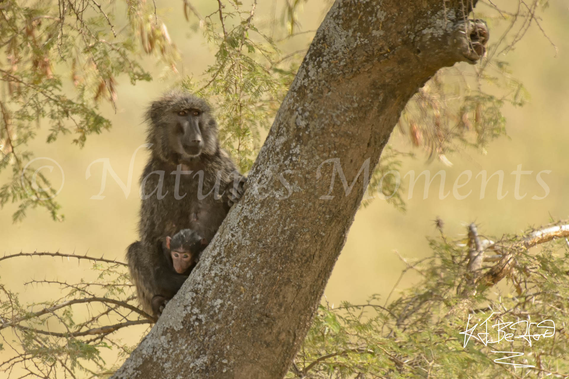 Olive Baboon with Infant